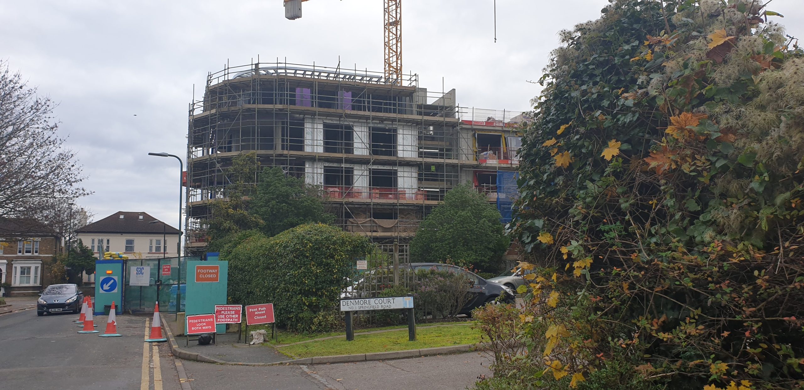 This current project includes infill installed from ground to 3rd floor with an additional top floor constructed using our stand alone system, to construct 20 apartments.