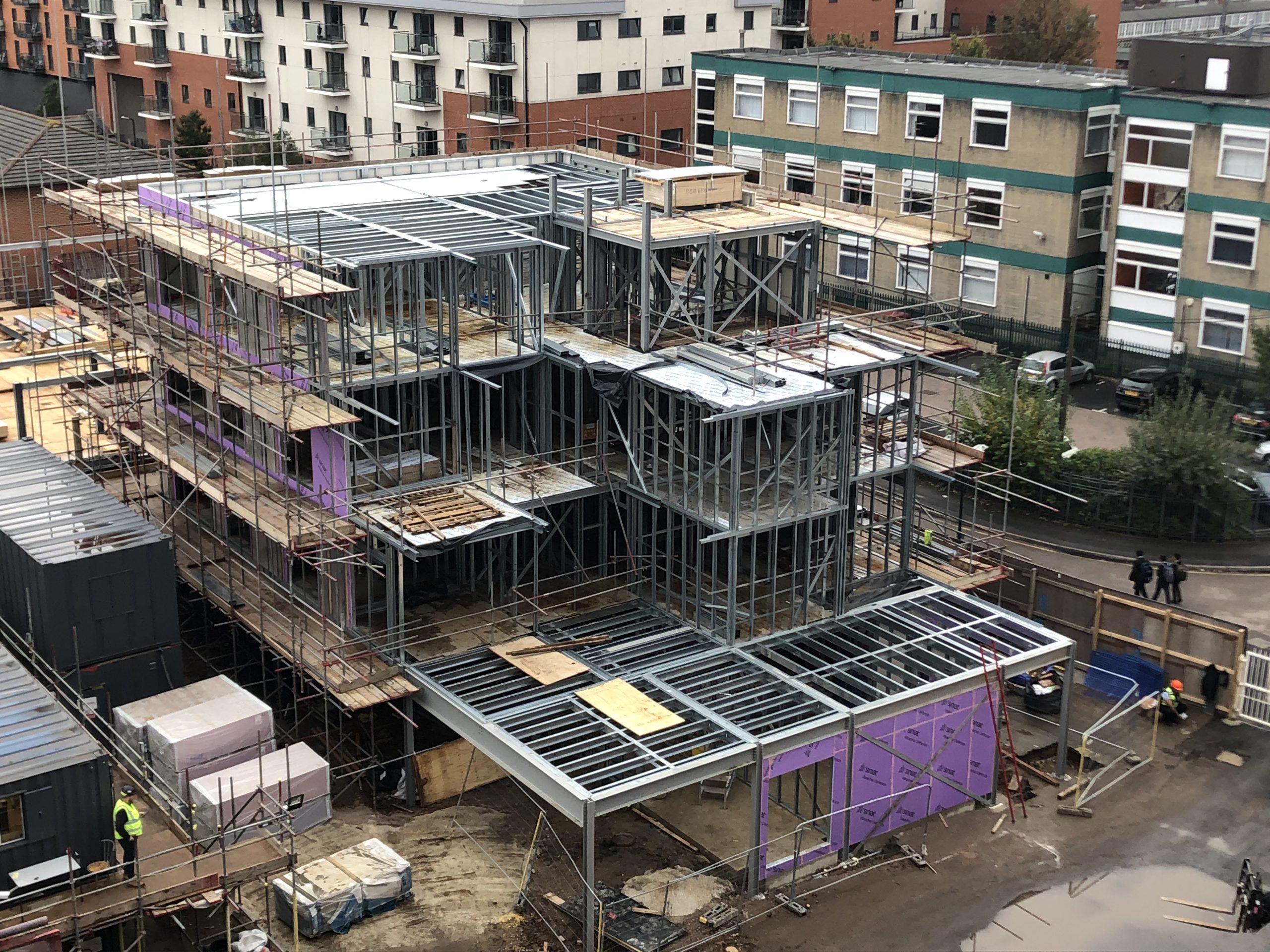 Steel Frame Solutions undertook the full design, supply and install of this residential project. Split across two blocks, using solely our stand alone system, creating 102 units to a 7 storey block and 15 units to a 5 storey block.