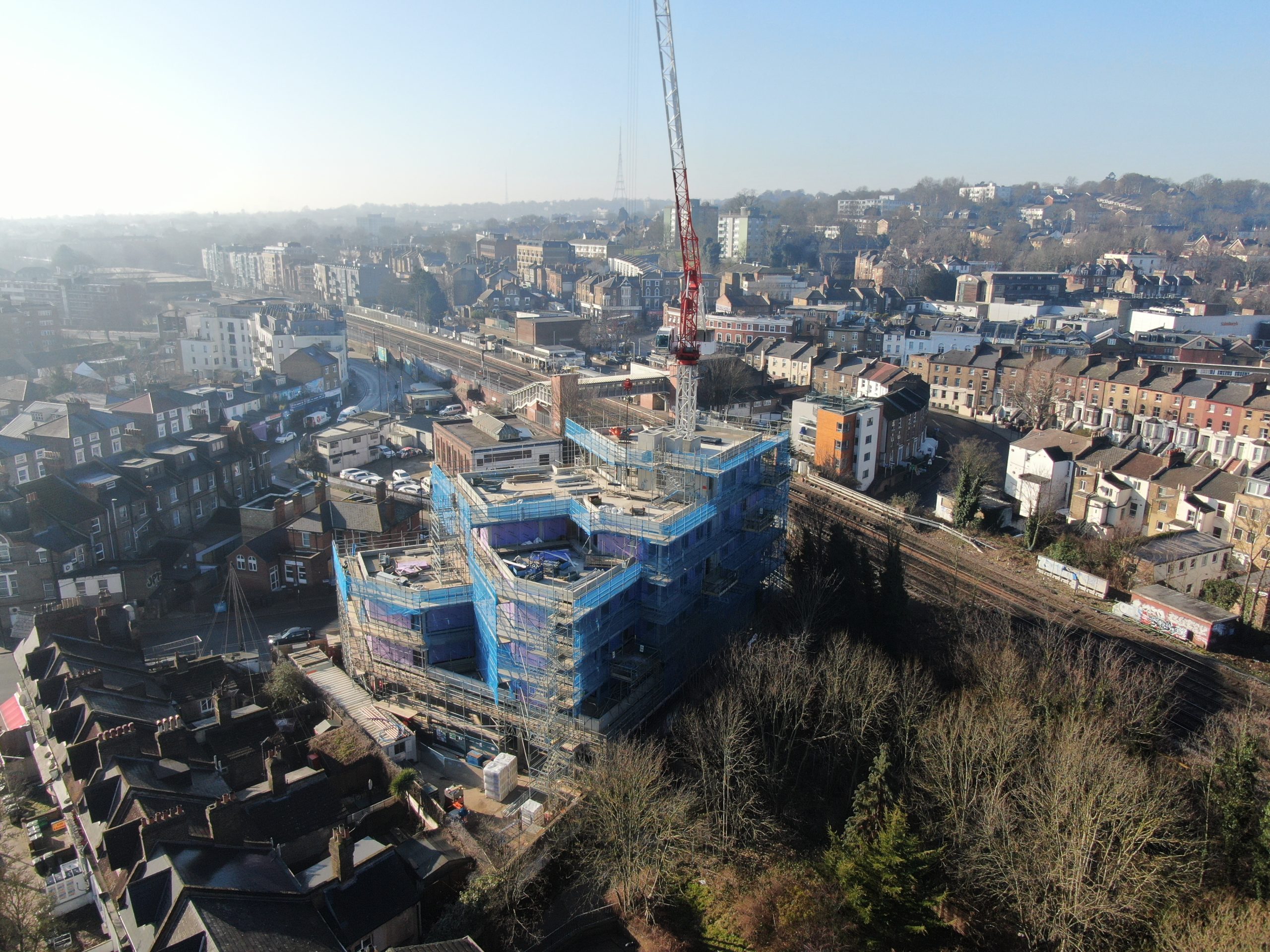 SFS infill steel framing being carried on out a 6 storey building to create 22 shared ownership apartments and commercial space to the ground floor.